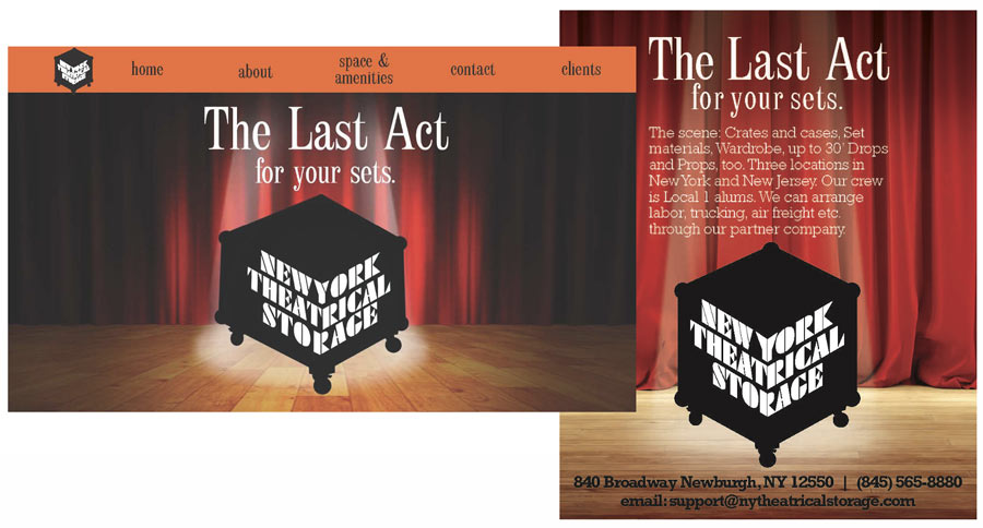 The New York Theatrical Storage look and feel is everything. If the ad can be the sum total expression of everything the client does, then run that ad into the ground! There aren’t enough good ones. Morphing the ad into the website was a matter of simple animation, the right branding development and pun intended, setting the stage.