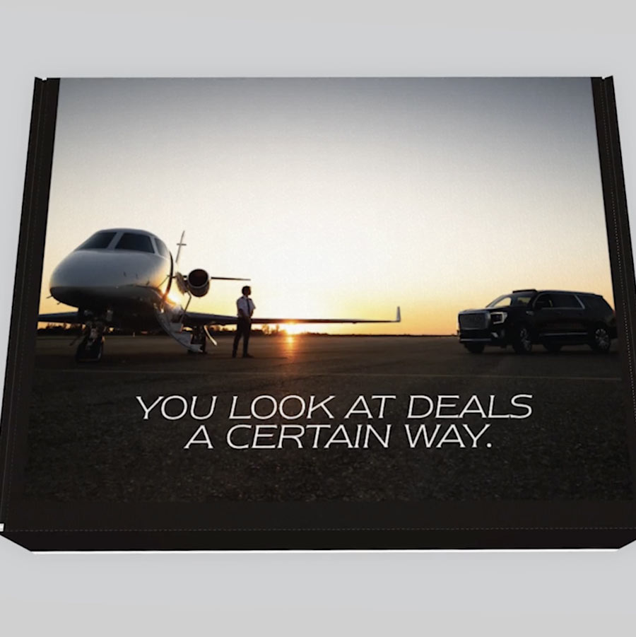“The Flight Department” out of Danbury, CT flies sports celebs, high-flyer financiers from around the world to a singular destination when required. This boxed mailing (think Christmas in July) contained ear buds that translate any foreign language into the listener’s native tongue. This is gift before purchase. Translating the esoteric FAA acronyms and terminology enabled our red carpet treatment to play up unique financial advantages the targeted high-net-worth audience can relate to. We deploy highly intrusive sales pieces like this often. Click to watch.